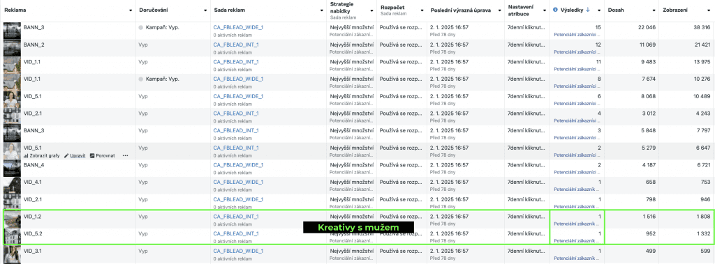 Veškeré kreativy jsme otestovali v kampaních jak ve variantě s ženským charakterem, tak i mužským, přičemž ze zkušenosti víme, že u každého klienta může zafungovat něco mírně jiného. Je proto benefitem více možností “aktéra“, v tomto případě však zvítězila žena, tedy sama jednatelka společnosti a kreativy